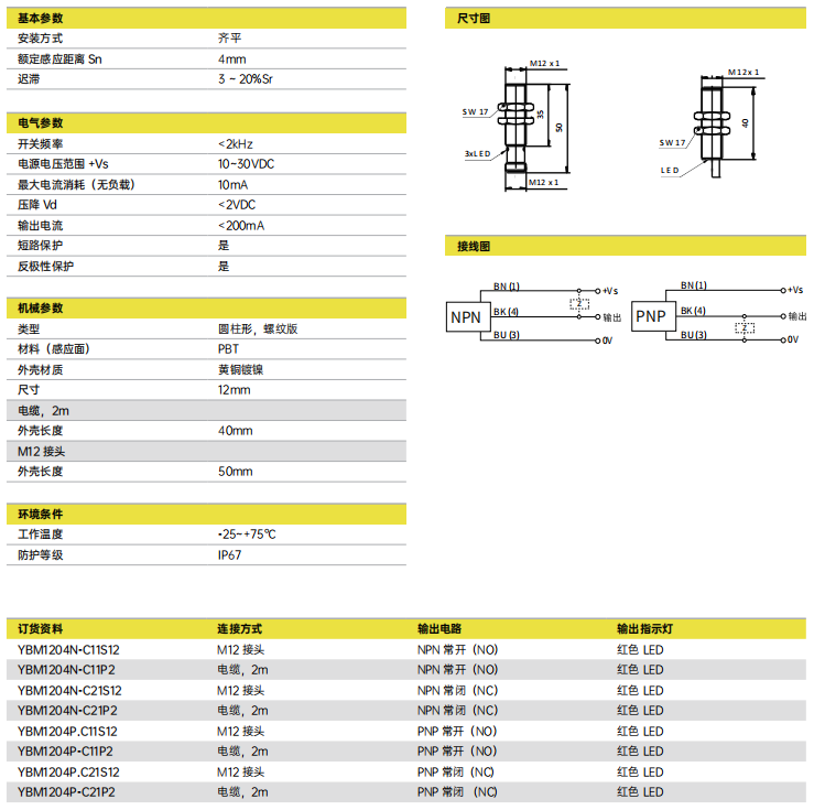 Sn = 4mm 在整个工作温度范围内的稳定性高