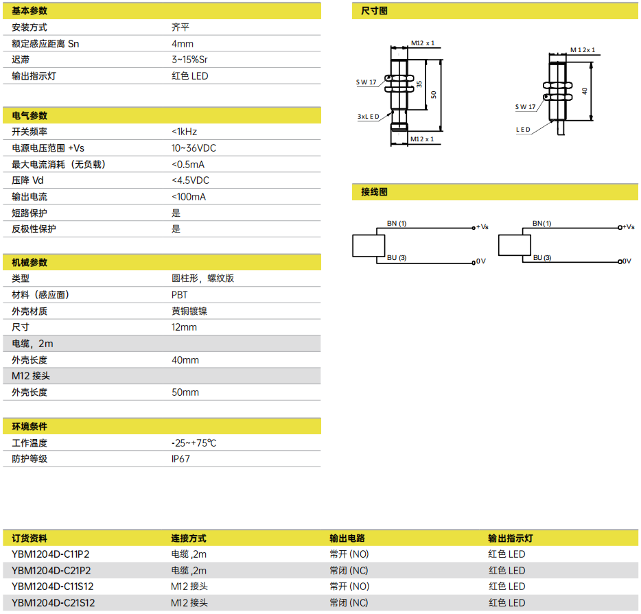 Sn = 4mm ■ 直流两线 ■ 螺纹 M12 x1