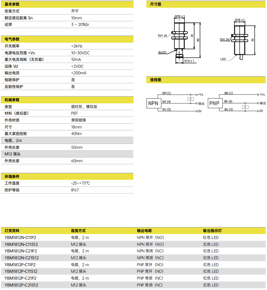 Sn = 12mm ■ 齐平安装 ■ 电磁兼容性增强