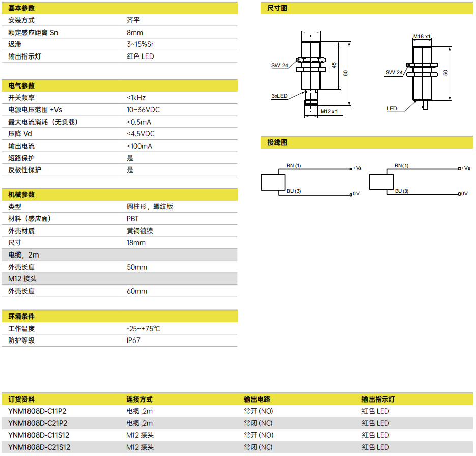 Sn = 8mm ■ 直流两线 ■ 螺纹 M18 x1