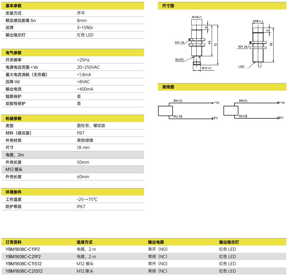Sn = 8mm ■ 直流两线 ■ 螺纹 M18 x1