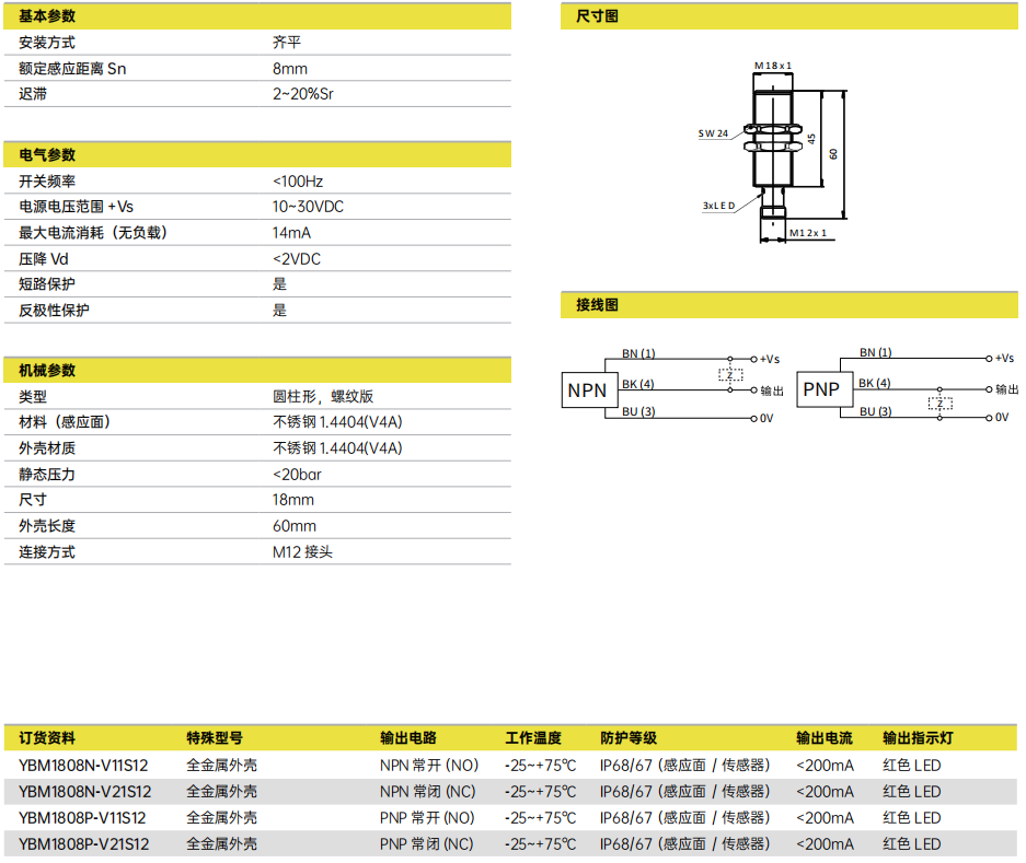 Sn = 8mm ■ 全不锈钢外壳 1.4404(V4A) ■ 防护等级 P69K