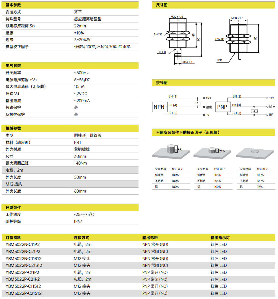 Sn = 22mm ■ 感应距离增强型 ■ 齐平安装