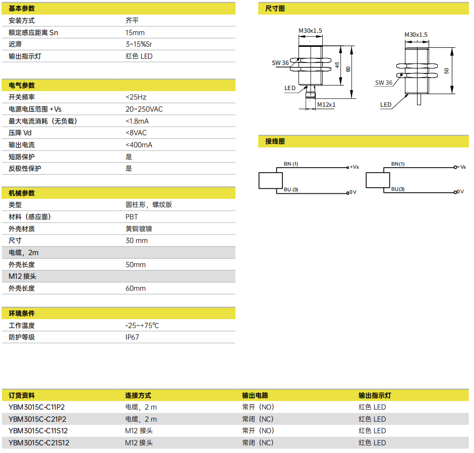 Sn = 15mm ■ 交流两线 ■ 螺纹 M30 x1.5