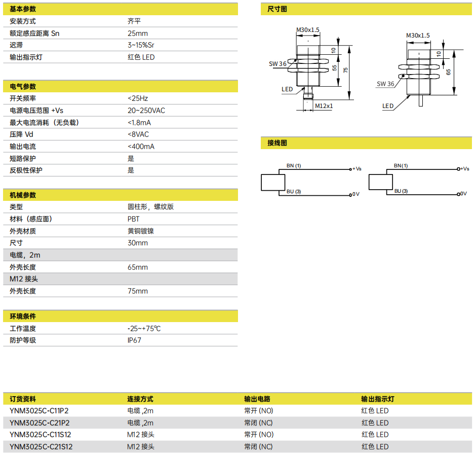 Sn = 30mm ■ 交流两线 ■ 螺纹 M130x1.5