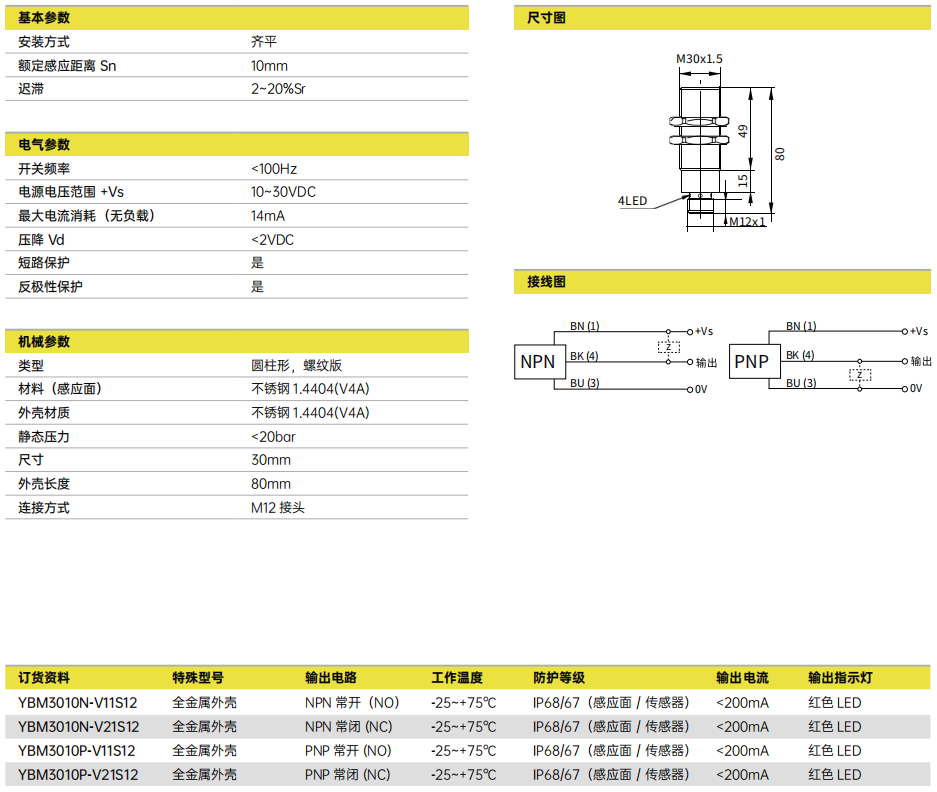 Sn = 10mm ■ 全不锈钢外壳 1.4404(V4A) ■ 防护等级 IP69K