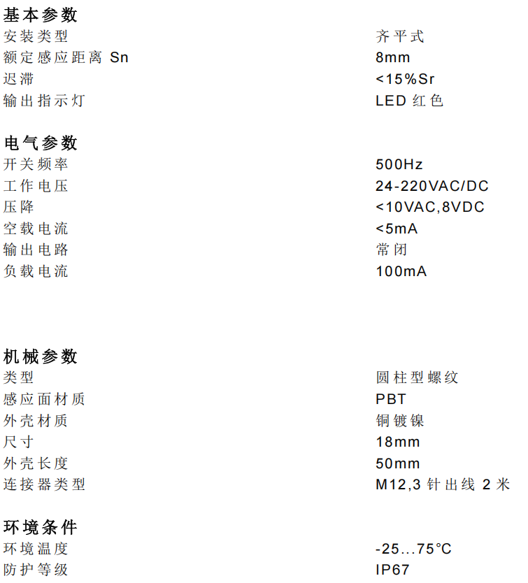 ■ M18*1mm ■ 8mm, 齐 平 式 安 装 ■ M12, 3 针 出 线 2 米